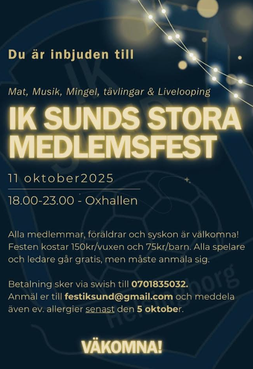 Betalning sker enligt följande: 25/9: 1100 kr, 11/1: 4250 kr. Anmälan är bindande efter första inbetalningen. Betalningen swishas till Anders Savbring: 072 213 54 02